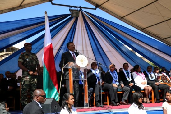 Le président de la République, Hery Rajaonarimampianina, a visité la ville de Fianarantsoa ce vendredi 18 juillet 2014. Il a salué la population de la ville Fianarantsoa au stade d’Ampasambazaha et n’a pas manqué d’évoquer la nécessité de la bonne gouvernance qui vise surtout à l’amélioration de la vie publique. Il a annoncé une dotation de matériels roulants pour la Commune urbaine de Fianarantsoa, sans oublier d’annoncer le retour à la normale des paiements des salaires des employés de la Commune et des Fokontany. Il a aussi annoncé que les pauvres de la vieille ville de Fianarantsoa bénéficieront du projet Haute intensité de mains d’œuvre (HIMO) car, précise-t-il, « tout cela fait partie de la base du développement ».
