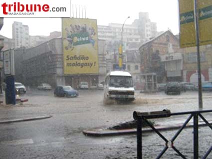 En ce début de l’année 2010, ce dimanche 3 janvier, vers l’après-midi, le quartier d’Andohan’Analakely et Ambohijatovo est devenu une zone inondée, en plein centre ville. Une forte pluie a pris de court les conducteurs et les piétons. Les rues et les trottoirs ont été ainsi envahis par l’eau de pluie. Les images