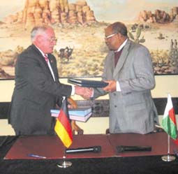 Dans le cadre de la coopération technique et financière entre Madagascar et l’Allemagne, deux accords viennent d’être signés par l’ambassadeur de la République Fédérale d’Allemagne, le Dr. Wolfgang Moser, et le ministre des Affaires Etrangères, Marcel Ranjeva, au MAE-Anosy.